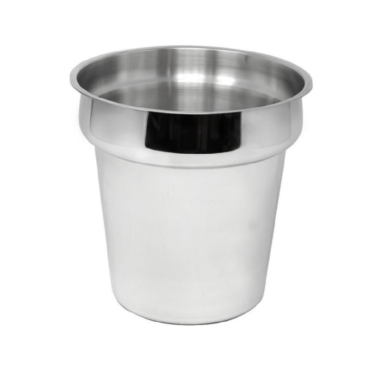 The Omcan 44667 Inset For Steam Table features a stainless steel construction with dimensions of 7-1/2" diameter and height, weighing approximately 1 lb. Its durable material provides resistance to corrosion and simplifies cleaning routines, suitable for continuous restaurant use. The product is designed to fit into standard steam tables, with a capacity of 4 quarts ensuring adequate portioning for moderate throughput. Its precise dimensions support seamless integration into commercial steam table units, promoting hygienic and efficient food service operations. The unit operates without electrical components, relying solely on ambient heat from the steam table environment, making it easy to maintain and clean. It is compatible with various food holding applications, from hot vegetables to prepared entrees, ideal for cafeteria lines, buffets, or institutional kitchens.