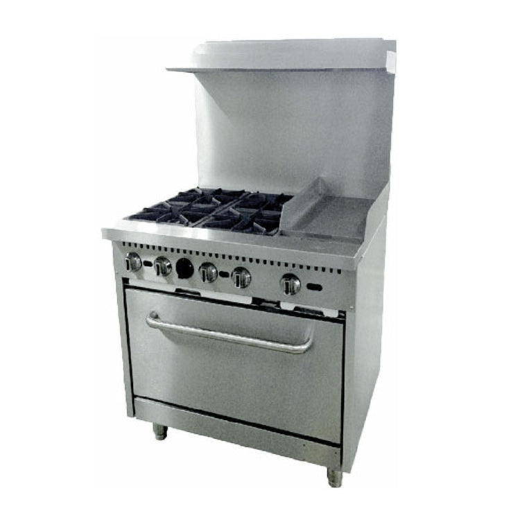 Omcan 46025 36 Inch Restaurant Range Gas 4 Burners and 12 Inch Griddle