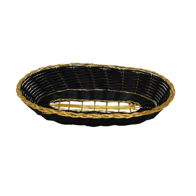 Omcan USA, 47193, Woven Basket, 9″D x 4.25″W x 2″H, golden trim, long oval, black