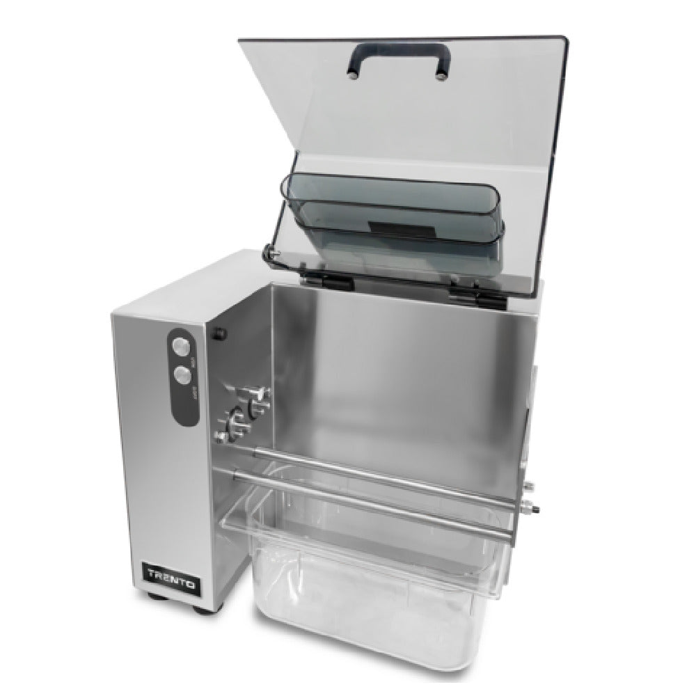 Omcan's Trento Meat Tenderizer stands out with its self-contained stainless steel design, robust motor, and safety features like a removable safety cover and waterproof switch. Its efficient countertop footprint and durable construction enable consistent, sanitary meat processing, enhancing operational reliability compared to competing models, while supporting streamlined workflow and easy maintenance.
