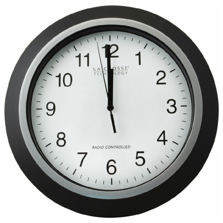 Private Label WT-3129B Color White Face, Black Numerals, Material Plastic Frame W/ Smooth Metallic Look, Outer Diameter 12", 305 Mm
