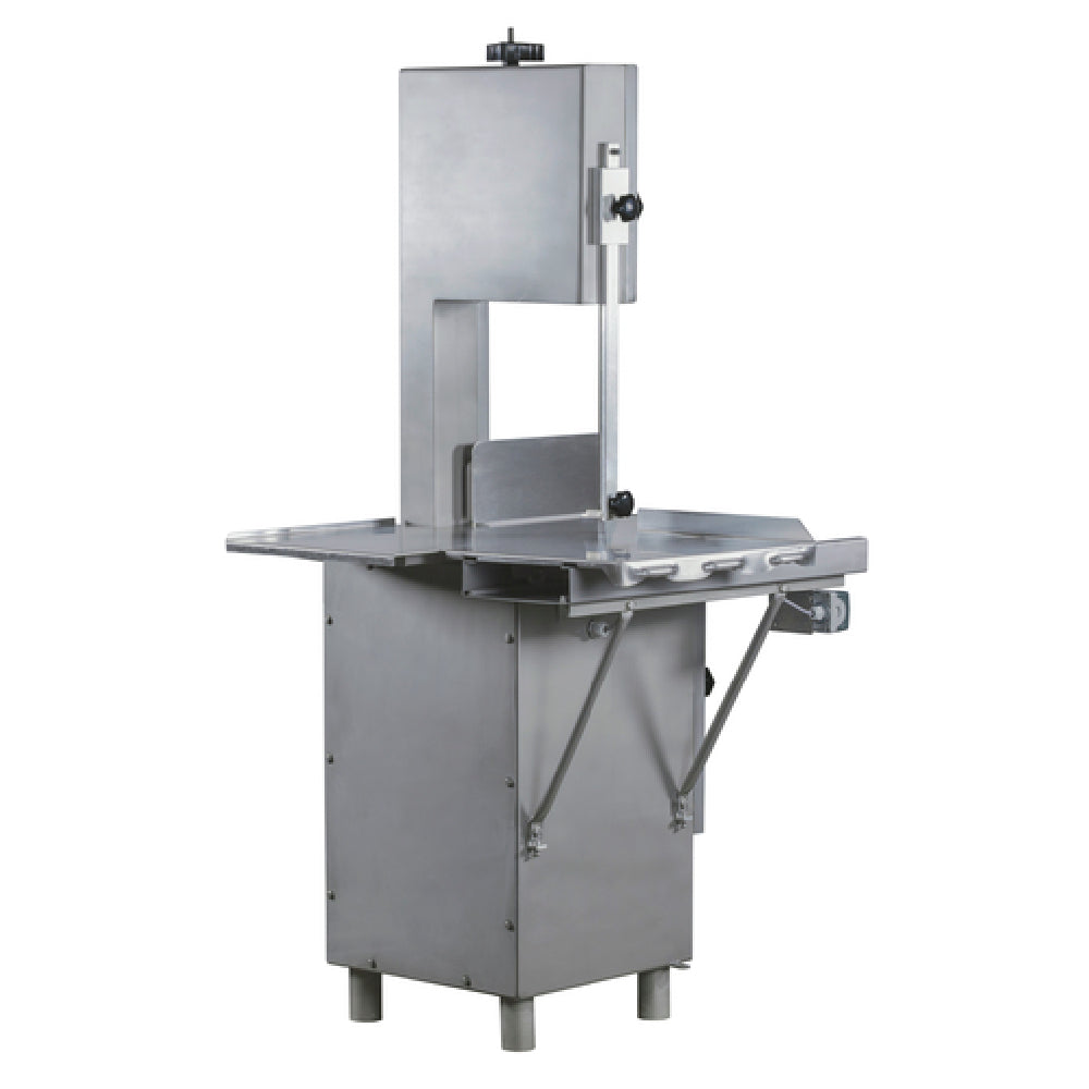 The Pro-Cut KS-120 Meat Saw Floor Model with 120" blade is a commercial-grade electric meat saw designed for high-capacity meat processing environments. Equipped with a 3 HP motor and belt-driven mechanism, it provides reliable power and precision cuts for butcher shops, meat processing plants, and large-scale foodservice operations. Its stainless steel construction ensures durability and sanitation, with a cutting clearance of 13-2/5" W x 18-2/5" H, accommodating large meat sections. The unit features removable wheel and scrap cleaners for straightforward maintenance, and includes essential accessories such as a push plate, motor protector, and waste tray. The versatile floor model incorporates adjustable legs for convenient installation, with a standard 220V/60Hz/3-phase power supply to support demanding workloads. Its technical specifications demonstrate efficient performance in demanding commercial meat processing workflows.