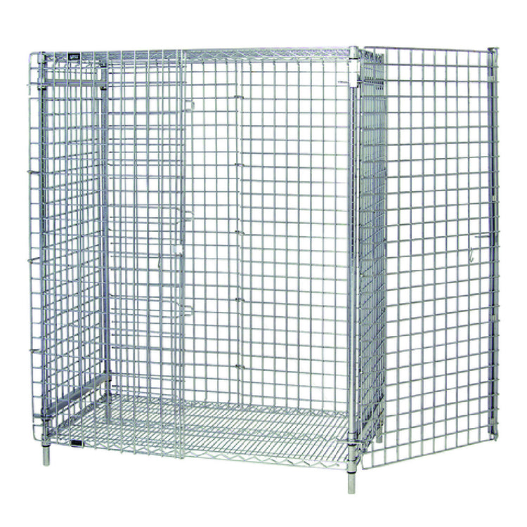 This security unit offers comprehensive storage with fixed shelving and security panels tailored for high-traffic commercial kitchens. Its chrome-plated wire construction provides structural strength while facilitating airflow and easy cleaning. Designed for moderate workloads, it seamlessly integrates into environment requiring secure storage and asset management without the need for frequent maintenance. Its combination of durability, functionality, and security enhances workflow efficiency by safeguarding critical equipment and supplies in fast-paced foodservice settings.