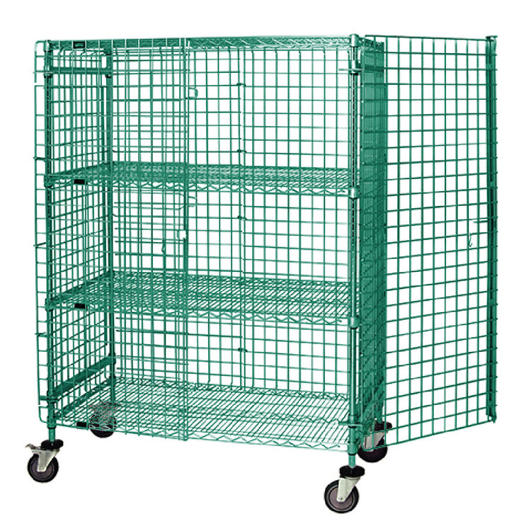 Quantum's M2136-69SECP-2 stands out among security units with its combination of corrosion-resistant epoxy coating, NSF compliance, and integrated mobility features. Its modern wire design provides optimal airflow and sanitation, while the security panels ensure safe storage. Its construction and compact footprint improve operational efficiency without compromising security or cleanability, making it a preferred choice in busy commercial kitchens.
