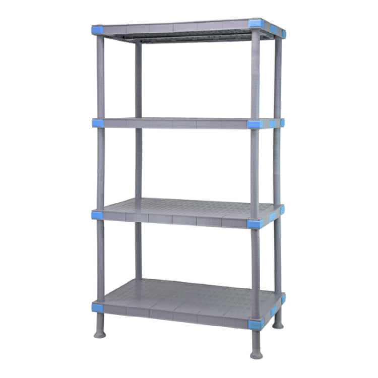 The Quantum QP217262SS-4 Millenia Shelving Unit is engineered for reliable load-bearing performance with four solid polymer shelves, each equipped with removable mats for hygienic user-friendly cleaning. Its corrosion-resistant polymer construction supports food safety environments and ensures long-term durability under heavy workloads. Designed for easy assembly and ongoing maintenance, the unit's posts and dunnage stand provide stable support, accommodating moderate throughput storage needs in commercial kitchens, beverage facilities, or warehouse stocking. The 72"W x 21"D x 62"H dimensions optimize stacking capacity and workflow integration for high-demand storage setups.