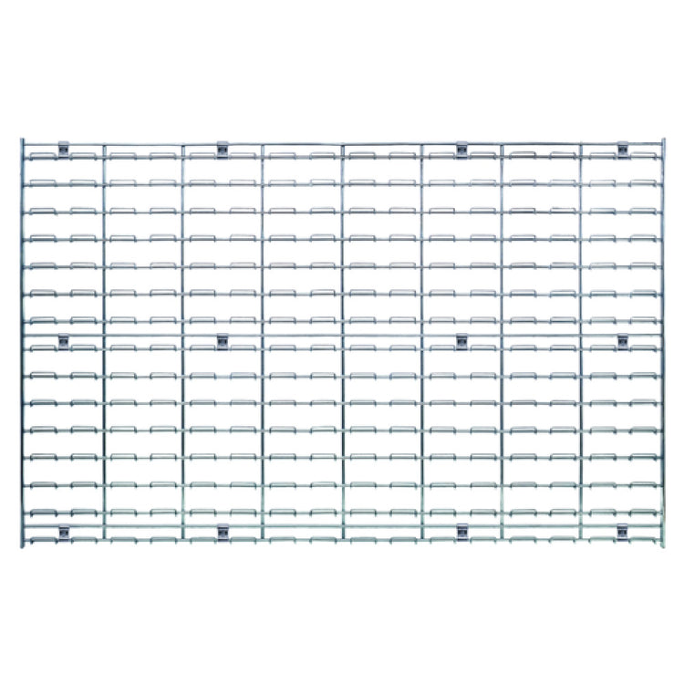 The Quantum WLP-3048C Wire Louvered Panel is a high-capacity wall-mounted shelving solution designed for commercial foodservice environments. Measuring 48 inches in width by 30 inches in height, this wall grid panel provides a robust load capacity of 300 pounds, making it suitable for storing a variety of Ultra Stack, Hang, and Mesh bins. Crafted with a durable chrome-plated finish, it supports organized storage and efficient workflow integration in professional kitchens, commissaries, and food storage areas. The panel includes twelve direct mounting clips for secure installation, optimizing space while maintaining structural integrity for heavy-duty applications.
