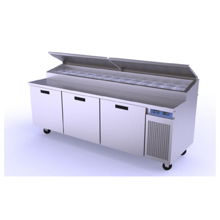 This refrigerated prep table offers an efficient workflow for commercial kitchens by integrating three hinged doors for quick access, a stainless steel work surface for durability, and an internal design optimized for easy cleaning and maintenance. With a precise 28.18 cu. ft. capacity, it accommodates multiple food pans, supporting streamlined food prep and storage. Its self-contained refrigeration with separate controls ensures accurate temperature management, essential for food safety and quality. The unit’s robust stainless steel exterior resists corrosion, while 6-inch casters facilitate mobility within busy kitchen environments, supporting efficient space utilization and workflow. Suitable for medium-volume foodservice operations, this prep table enhances productivity with its reliable performance and sturdy construction.