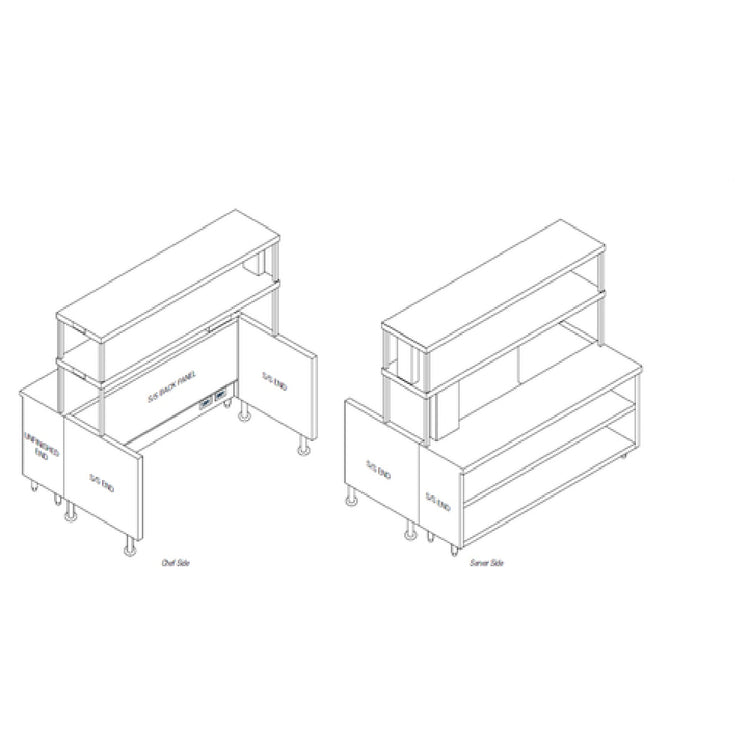 Randell RCR-82.5 82-1/2 Inch Modular Chef Service Counter Right Section Stainless Steel with Plate Storage Cabinet and Double Overshelf