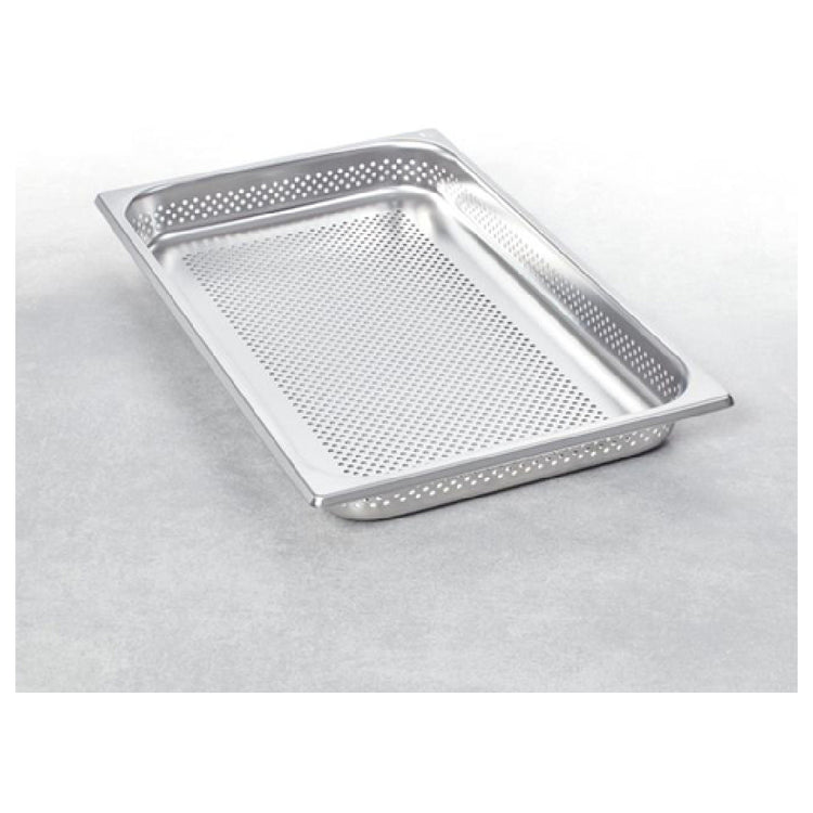 The Rational 6015.1165 perforated steam pan features a robust construction with dimensions of 12-3/4" by 20-7/8" and a depth of 2-1/2", weighing just 2.66 lbs for ease of handling and installation. Its stainless steel body provides excellent corrosion resistance and easy cleaning, suitable for sanitation routines in high-use environments. The pan is designed for compatibility with standard gastronorm-compatible steam tables, making it an integral part of insulated foodservice equipment. Its perforated style enhances heat and moisture transfer, supporting efficient steaming and draining. Operating within typical commercial kitchen conditions, it can withstand regular sanitation and temperature range demands. Assembly requires no additional tools and supports intensive daily use, with included accessories or gaskets if applicable. The pan conforms to industry standards for food safety and durability, ensuring consistent results in busy foodservice settings.