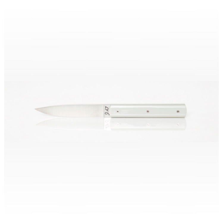 The Revol 239947 Perceval Table Knife features a robust construction with an 18/10 stainless steel blade, crafted in France for premium quality. It operates without electrical requirements, emphasizing durability and ease of maintenance. The knife’s handle is made from polyacetal with a frosted finish, contributing to its ergonomic grip and aesthetic appeal. Measuring approximately — with an optimal weight for balanced handling — it's engineered for high-volume foodservice environments where reliability and precise performance are paramount. The knife’s construction supports frequent dishwashing cycles while maintaining structural integrity, and its non-serrated blade enhances cutting control for delicate and precise food preparation. Dimensions and weight are designed for easy handling and compatibility with standard cutlery storage solutions.