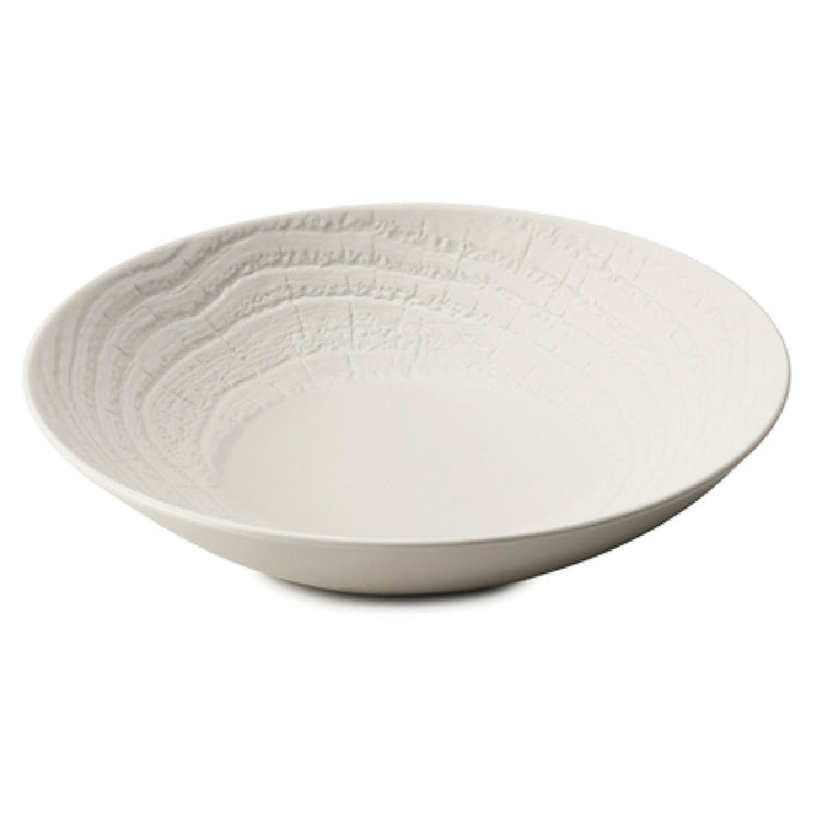 - Design Features: Round shape, deep coupe rim for presentation and stacking