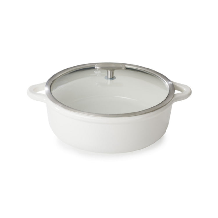 Revol USA, 660153, (B1+BM1229COCVV-283-2593) Cocotte, 135 oz., 11-1/2"Dia. x 3-3/4"H, round, induction ready, with glass lid, oven, microwave, freezer & dishwasher safe, porcelain, albaster white, Bombance collection, (US stocked item) (Packed By: 1 Each)