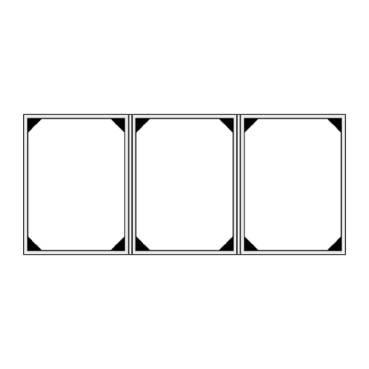 The Risch LTH-3V 4.25X11 Tuxedo Leather Padded Bonded Leather Menu Cover (specify Color) is a premium presentation accessory designed for professional foodservice environments requiring durable and stylish menu displays. Crafted from leather-like bonded material, this 4-1/4" x 11" fold-out menu cover features a triple-fold design and three viewing panels, facilitating organized and appealing menu presentation. The cover includes black cards with black album-style corner tabs to securely hold menu inserts, making it suitable for high-traffic restaurants, hotels, or catering venues seeking a refined, long-lasting solution with precise dimensional and material specifications. It is manufactured in the USA, ensuring quality and consistency for niche commercial use.
