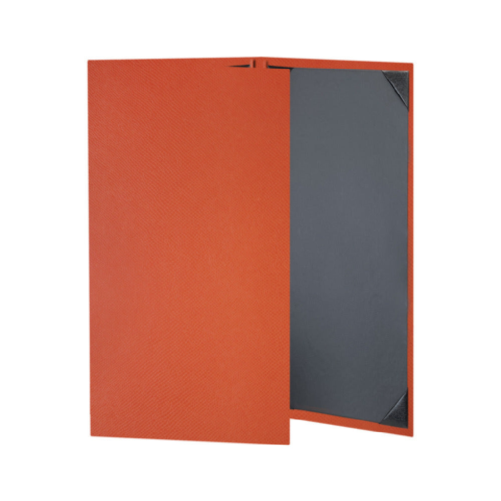 A commercial menu cover is a durable display accessory designed to hold and present restaurant menus in foodservice establishments. Constructed from materials like vinyl or leather, these menu covers protect menus while maintaining an attractive appearance. The Risch RIO-3V 8.5X14 is typically installed in restaurants, hotels, or catering venues where frequent menu updates are required. It is equipped with secure corner tabs and a fold-out design, supporting quick insertion and replacement of menu pages. Ideal for medium-volume operations, this menu cover ensures consistent presentation, sanitation, and functionality in active hospitality environments.