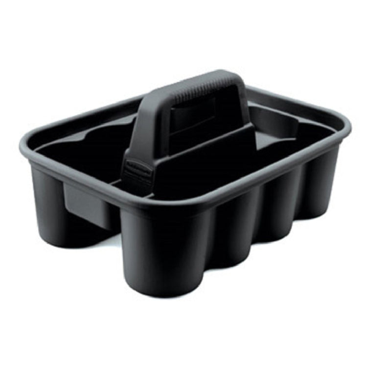A commercial janitor cart accessory is a durable organizational component designed for efficient storage and transport of cleaning supplies within professional environments. The Rubbermaid FG315488BLA Deluxe Carry Caddy is installed in janitor carts or used independently to streamline supply management. Its impact-resistant plastic material and precise dimensions make it ideal for maintaining organized workflows in healthcare, hospitality, and foodservice facilities, supporting quick access and mobility during routine cleaning tasks.