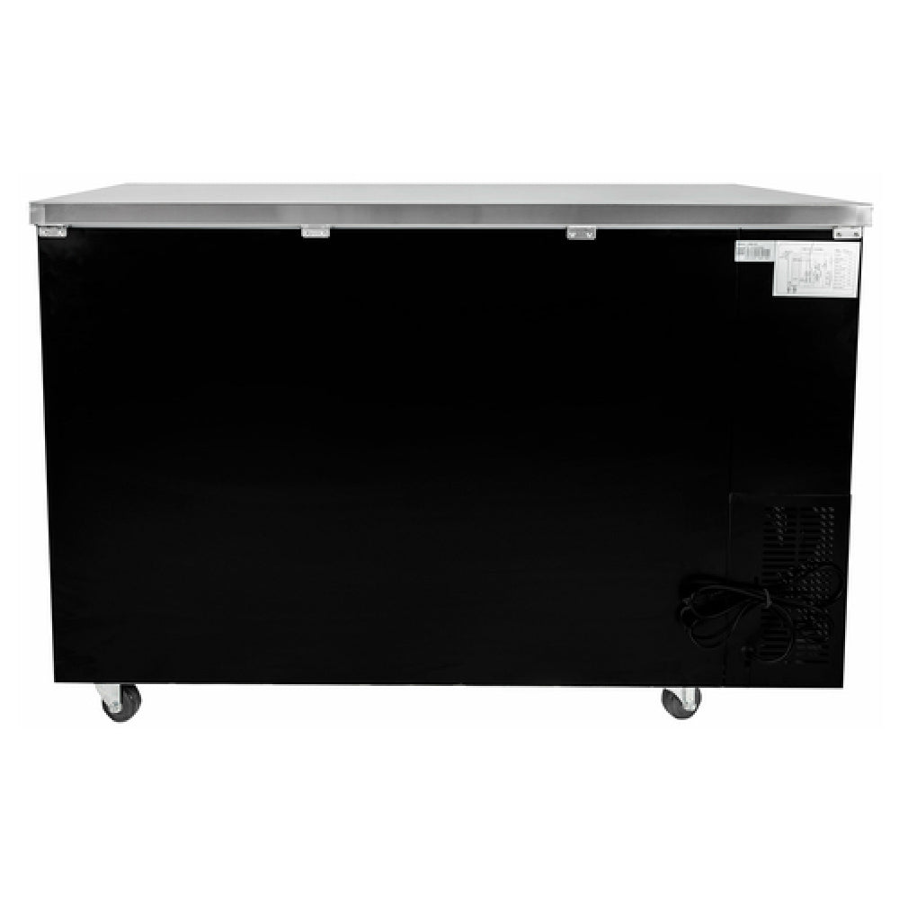 SABA , SBB-24-60G, Back Bar Cooler, two-section, 60-3/4" W, 15.8 cu. ft./446 liter capacity, (2) glass doors, (4) shelves, LED interior lighting, digital temperature control, range 33°F to 38°F, R134a refrigerant, self-contained side mounted refrigeration, black exterior, (4) 4" casters, 1/3 HP, 115v/60/1-ph, 6.4 amps, NEMA 5-15P, cETLus, NSF