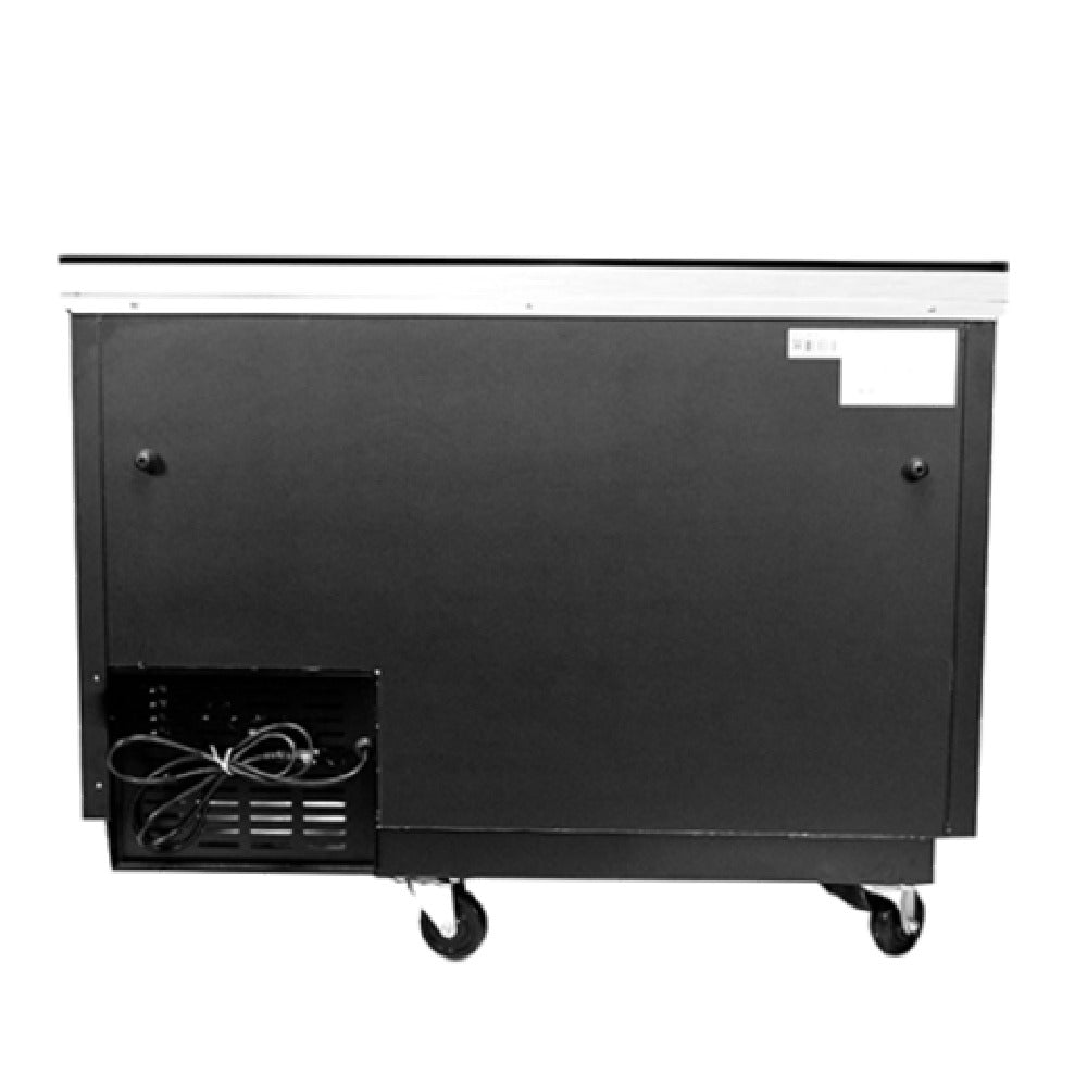 SABA , SBB-27-58B, Back Bar Cooler, two-section, 58-7/8" W, holds (2) 1/2 barrels or (88) 6-pk 12oz. cans capacity, (2) solid doors, (4) shelves, LED interior lighting, digital temperature control, range 33°F to 38°F, R134a refrigerant, self-contained side mounted refrigeration, black exterior, (4) 4" casters, 1/3 HP, 115v/60/1-ph, 6.2 amps, NEMA 5-15P, cETLus, NSF