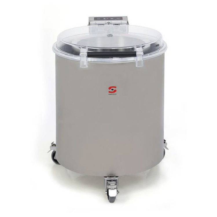 Sammic, ES-100, (1000702) Salad Dryer, 13 lbs. (6kg / 10 gal.) ) capacity (11 lettuce heads), 2-speed, 250-800 lbs. drainer hourly production, stainless steel basket, self-opening clear plastic lid, casters, .75 hp, 120v/50/60/1-ph, NSF, ETL