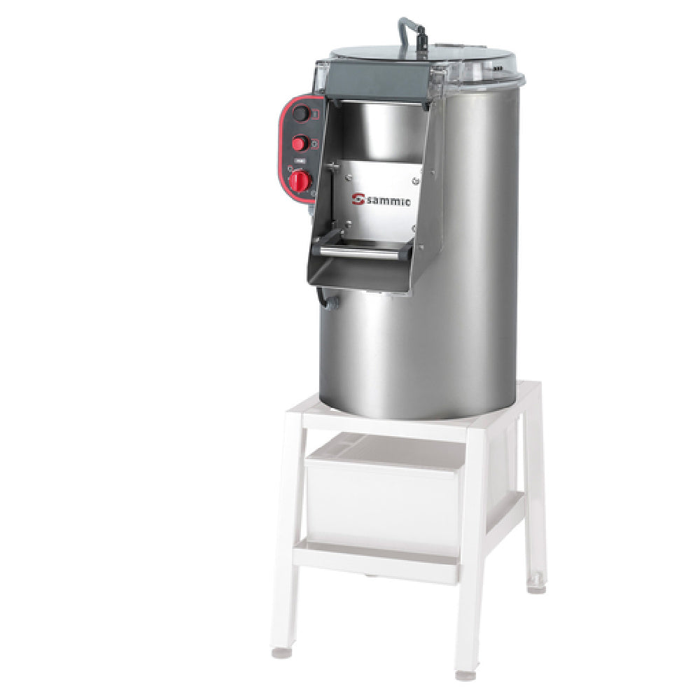 Sammic, PI-20, (1000618) Potato Peeler, electric, worktop, (without stand), 0-6 minute timer, on/off push buttons, 44 lbs load capacity per cycle, 800/950 lbs. hourly output, aluminum base plate with removable abrasive lining, water inlet system with non-return air break, stainless steel construction, 0.75 HP, 5 amps, 120v/60/1-ph, NSF, ETL