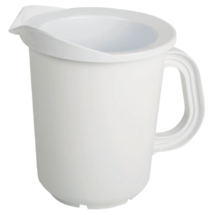 The San Jamar CI7025 Chill-It™ Beverage Pitcher combines precise thermal insulation with robust polycarbonate durability, supporting efficient beverage cooling and storage in commercial kitchens. Its ergonomic handle allows secure grip and easy pouring, while the white polycarbonate surface facilitates effortless cleaning and sanitation. Suitable for both countertop and portable use, this pitcher streamlines beverage service workflows in busy hospitality environments, reducing temperature loss and maintenance time. Designed for medium-volume beverage operations, its 60 oz. capacity fulfills demand during peak service periods without frequent refilling.