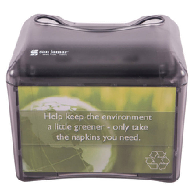 San Jamar, H4005TBK, Venue™ Tabletop Napkin Dispenser, 7-1/2"W x 6-1/8"D" x 6-1/4"H, holds 200 fullfold napkins, advertisement slot, impact resistant plastic, translucent black pearl, NSF