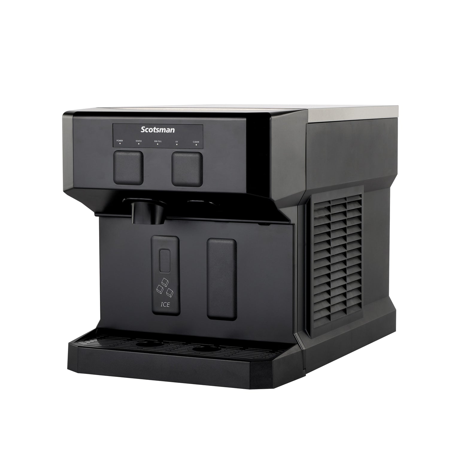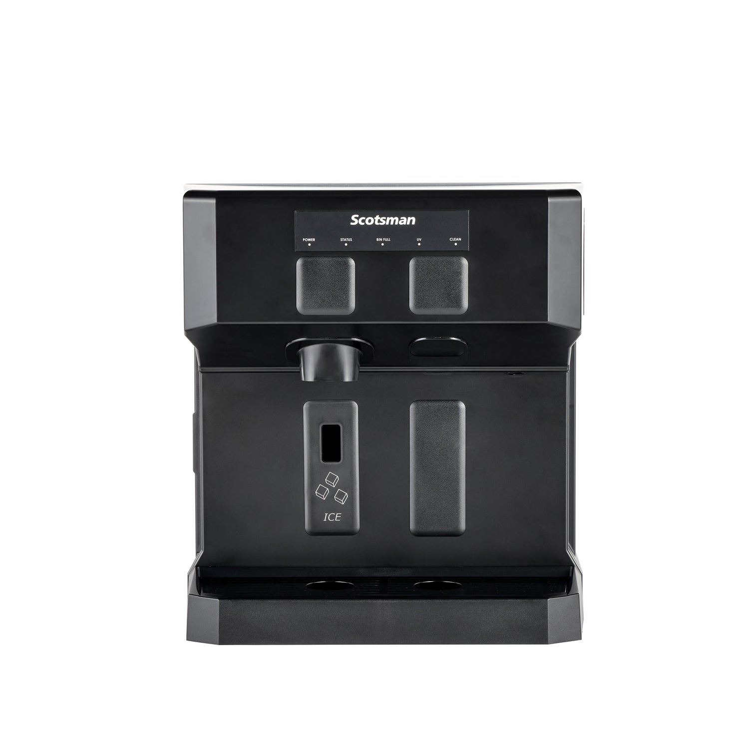 A commercial ice and water dispenser is a self-contained appliance designed for high-volume dispensing of ice and chilled water in professional foodservice or institutional settings. It provides consistent, hygienic output suitable for beverage stations, hospitals, or convenience stores. The Scotsman HID207AX-1 model is a high-capacity, nugget-style ice maker and water dispenser with integrated sanitation features, operating efficiently in medium-volume workflows, supporting rapid customer or patient hydration needs with minimal maintenance. It is installed on countertops in environments requiring reliable, quick access to chewable ice and clean water, making it ideal for hospitality and healthcare applications.