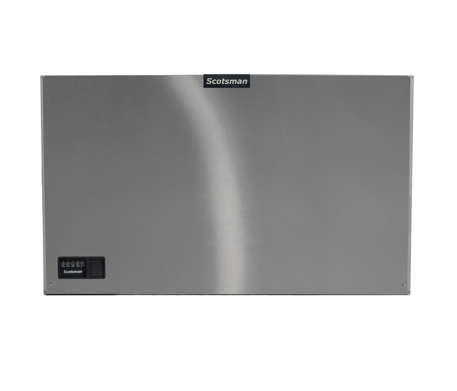A large, rectangular Prodigy ELITE Ice Maker by Scotsman, this commercial ice machine features a smooth stainless steel front panel, a black digital display in the lower left corner, and the logo centered above its sleek, industrial design.