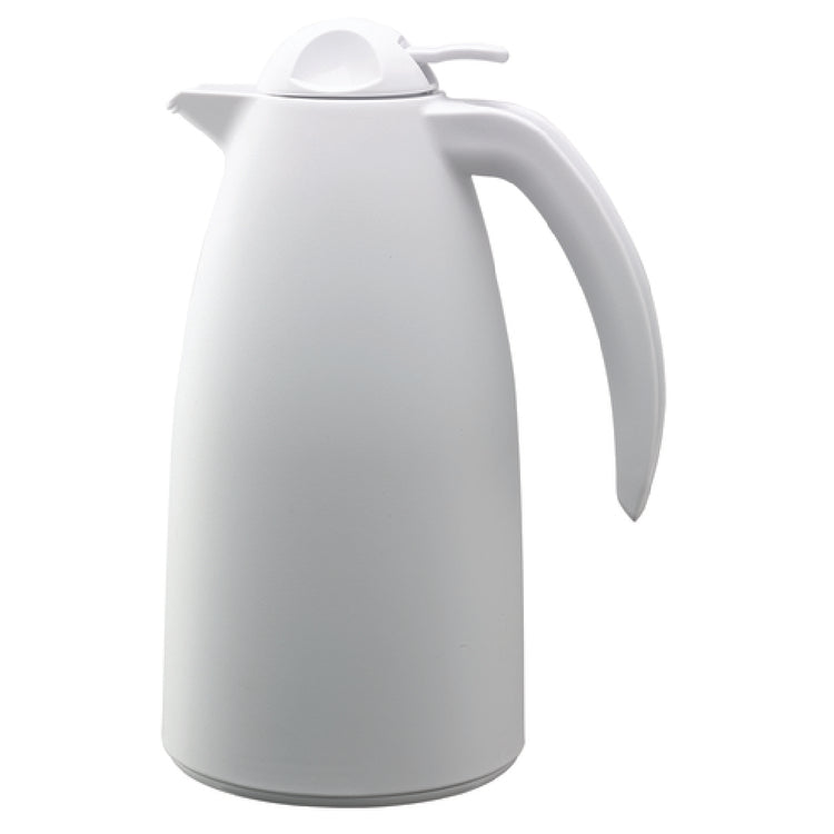 Service Ideas, ALPH10WH, Alpha Server, 1 liter (33.8 oz.), 7-3/4" x 5-1/2" x 11-1/4"H, retention: 6-8 hours, hand wash, glass-lined, vacuum insulated, push button style, white lid, plastic, white (Priced per each, packed 6 each per case)
