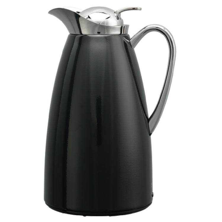The Service Ideas CJZ1BLK Classy™ Vacuum Carafe 1 Liter (33.8 Oz.) is a commercial-grade beverage server designed for precise temperature retention and durability in foodservice environments. Constructed from stainless steel with a glass liner, this 1-liter capacity unit features a stainless push-button lid for secure, one-handed operation. Its compact dimensions of 5-1/2" x 6-1/2" x 10" make it suitable for countertop or table setup, providing 6-8 hours of heat or cold retention. Engineered for professional use, it supports extended beverage quality in cafes, hotels, and catering services. This model emphasizes material integrity and functionality, making it ideal for high-volume hospitality operations needing reliable hot and cold beverage service.