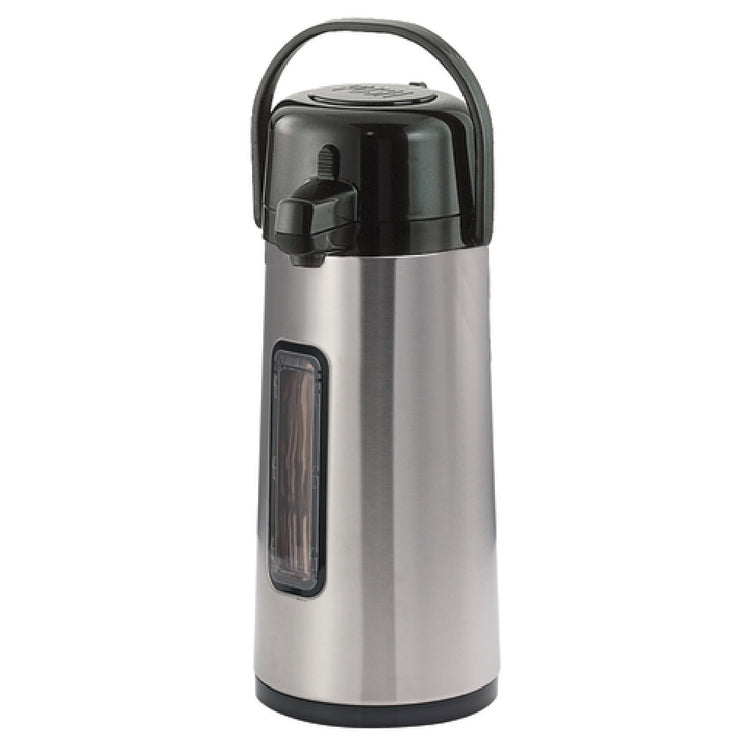 This Eco-Air® Airpot offers robust thermal insulation, a stainless steel construction resistant to daily wear, and a user-friendly push button top suitable for quick, efficient service. The glass liner facilitates hassle-free cleaning, while the sight glass enables easy beverage level monitoring. Its compact dimensions optimize countertop space, making it ideal for high-traffic café or catering stations with moderate throughput.