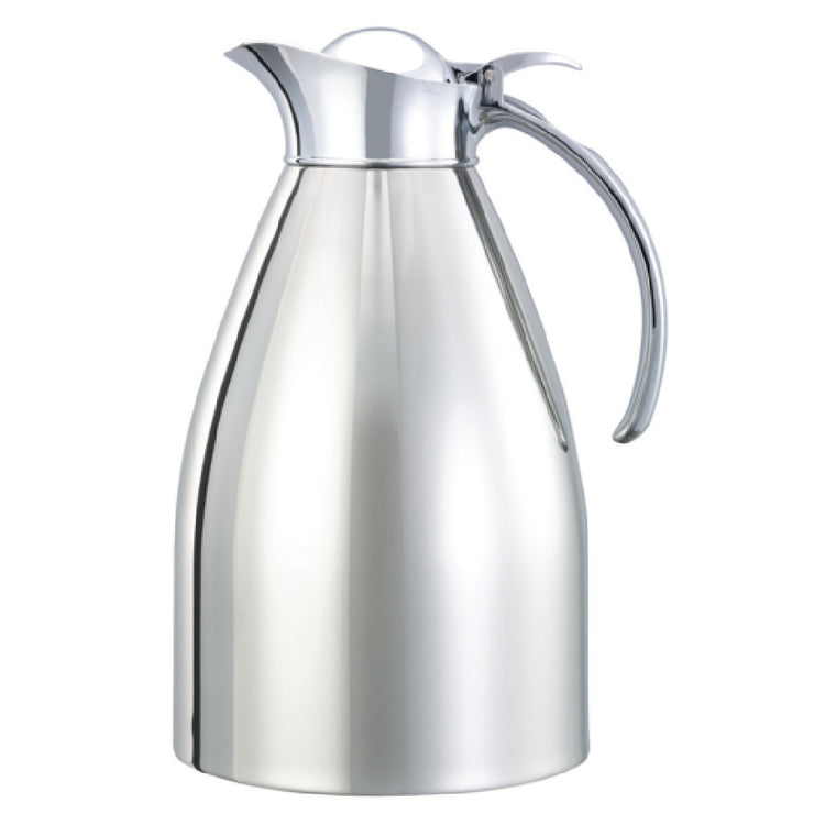 The Service Ideas MAR15PS Marquette Series Carafe 1.5 Liter Vacuum Insulated is a high-performance beverage server designed for commercial foodservice environments requiring durable and efficient liquid containment solutions. Crafted with a stainless steel vacuum construction, this carafe ensures optimal temperature retention for hot or cold beverages. Its 1.5-liter capacity makes it suitable for buffet lines, hospitality stations, and catering setups, providing consistent thermal insulation and ease of cleaning with dishwasher-safe features. The polished stainless steel exterior delivers a professional appearance suitable for upscale dining establishments and institutional cafeterias. This product combines technical precision with reliable performance, supporting workflows that demand temperature stability and hygienic maintenance in busy service settings.