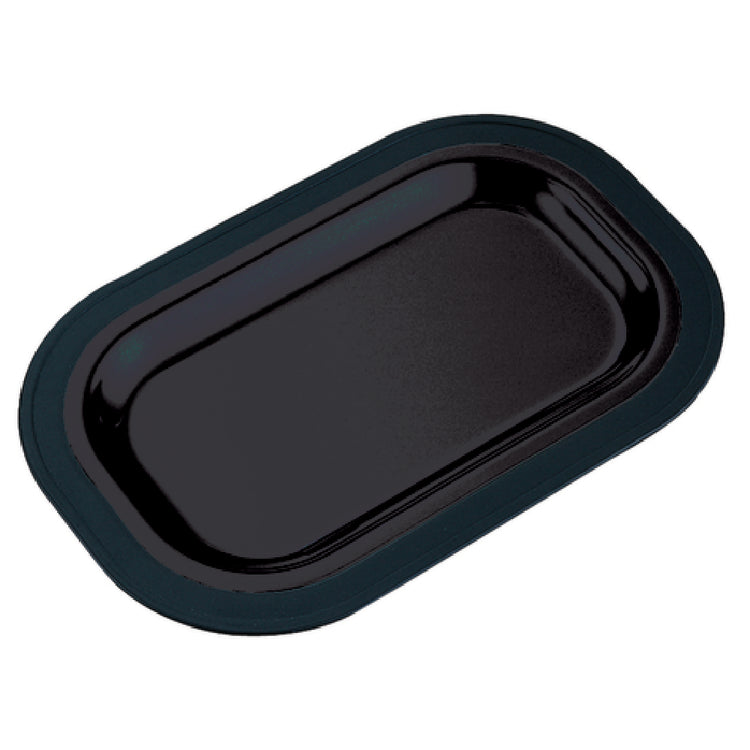 The OT11BL Thermo-Plate® Platter Base employs a high-quality, impact-resistant plastic material, measuring 12-1/2 inches in width and 8 inches in depth, with a height of 1-1/4 inches to maximize dead air space for temperature retention. Its lightweight design at 1.03 lbs supports ergonomic handling and efficient stacking. Manufactured in the USA, it is dishwasher safe and designed for commercial dishwasher durability. The product is compatible with the OT11SS model, ensuring a seamless fit for high-volume food service scenarios, particularly in buffet, catering, or display settings requiring sustained temperature control. It features a rectangular shape to optimize presentation and storage while maintaining food safety standards with food-grade materials. The item ships in quantities of one, with typical shipping in 1-2 days. No electrical requirements or cooling mechanisms are necessary, as it leverages passive insulation techniques to preserve serving temperatures.