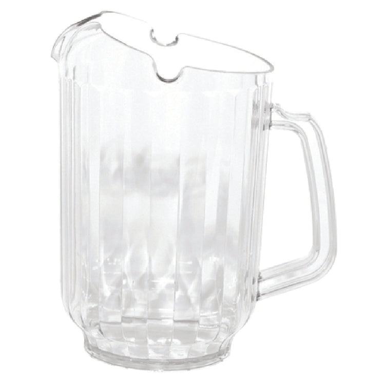 The Service Ideas PCP60V2 Pitcher is a commercial-grade plastic beverage container designed for high-volume foodservice environments. With a 1.7-liter (60 oz.) capacity, its clear BPA-free Tritan co-polymer construction offers excellent durability and chemical resistance. Its precise dimensions of 5-3/4" x 7-1/4" x 8-3/4" facilitate efficient storage and handling, making it suitable for use in hospitality, cafeteria, or catering settings. The pitcher’s 3-way pour feature enhances operational efficiency, allowing smooth and controlled liquid transfer. Its dishwasher-safe design simplifies cleaning, ensuring quick turnaround in busy commercial kitchens or establishments requiring sanitary compliance. This model is engineered to withstand repeated use under demanding everyday conditions, combining robustness with user-friendly functionality suitable for beverage service applications.