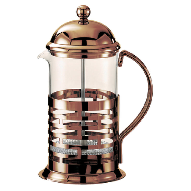 The Service Ideas T677BRNZ Brick French Coffee Press is a commercial-grade beverage preparation device designed for high-volume foodservice environments. Constructed with durable 18/8 stainless steel and a Pyrex® glass liner, this 0.8-liter (27 oz.) French press offers precise brewing control. Its bronze finish enhances aesthetic appeal while maintaining robustness suitable for frequent use. The product measures 4-3/4" x 6" x 9" and features inclusive components such as a lid, spiral screen, mesh screen, and fine mesh screen, facilitating consistent extraction. Engineered for professional kitchens, it provides 2-3 hour heat retention, ensuring beverage temperature stability during service. Dishwasher-safe body (with hand wash for screens and plunger) simplifies cleaning protocols, making it ideal for commercial café stations, restaurants, and hospitality venues requiring efficient, high-quality coffee or tea brewing solutions.