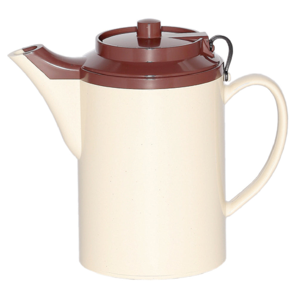 Service Ideas, TST612ST/BR, Teapot, 0.5 liter (16 oz.), 3-1/2" x 6-1/2" x 6", retention: 2-3 hours, dishwasher safe, double-wall insulated, self-locking lid with tether, baffled spout, dripless, flow-controlled spout, ABS plastic, stoneware/brown, Made in USA (Priced per each, packed 6 each per case)