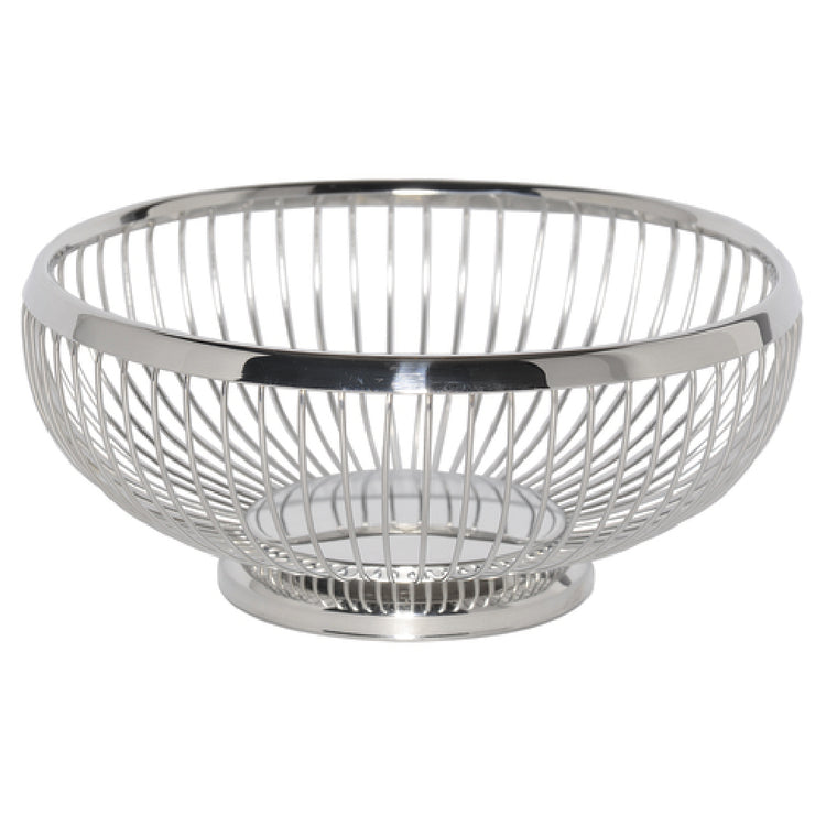 The WBR9PS wire basket offers a stable, polished stainless steel surface with a weighted base for reliable placement in busy service lines. Its 8-1/2" diameter enhances capacity without sacrificing stability, and the wire frame simplifies cleaning. Ideal for restaurant, catering, and buffet environments, it supports both presentation and storage tasks in high-traffic settings, ensuring durability and seamless integration with existing tabletopware.