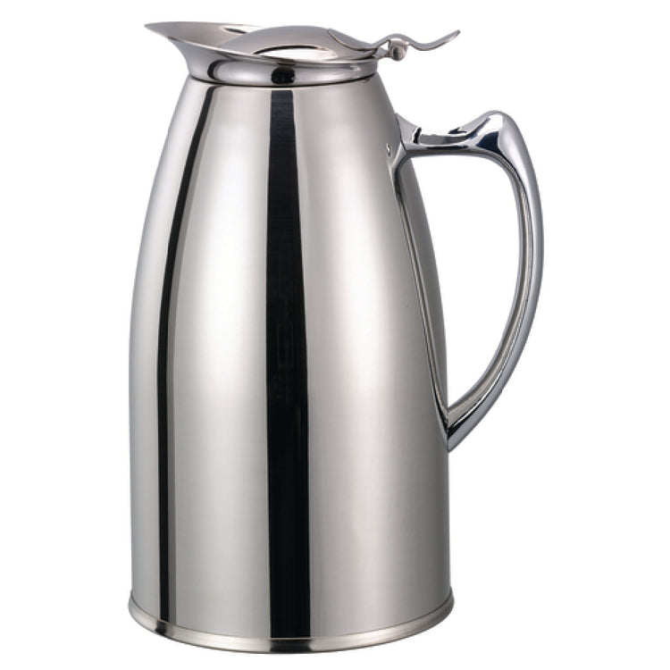 Service Ideas, WP1CH, Pitcher, 1 liter (33.8 oz.), 4-1/2" x 6" x 8-1/4", retention: 2-3 hours, flip top lid, hand wash (do not submerge), double wall, foam insulation, 18/8 stainless steel, chrome finish (Priced per each, packed 6 each per case)