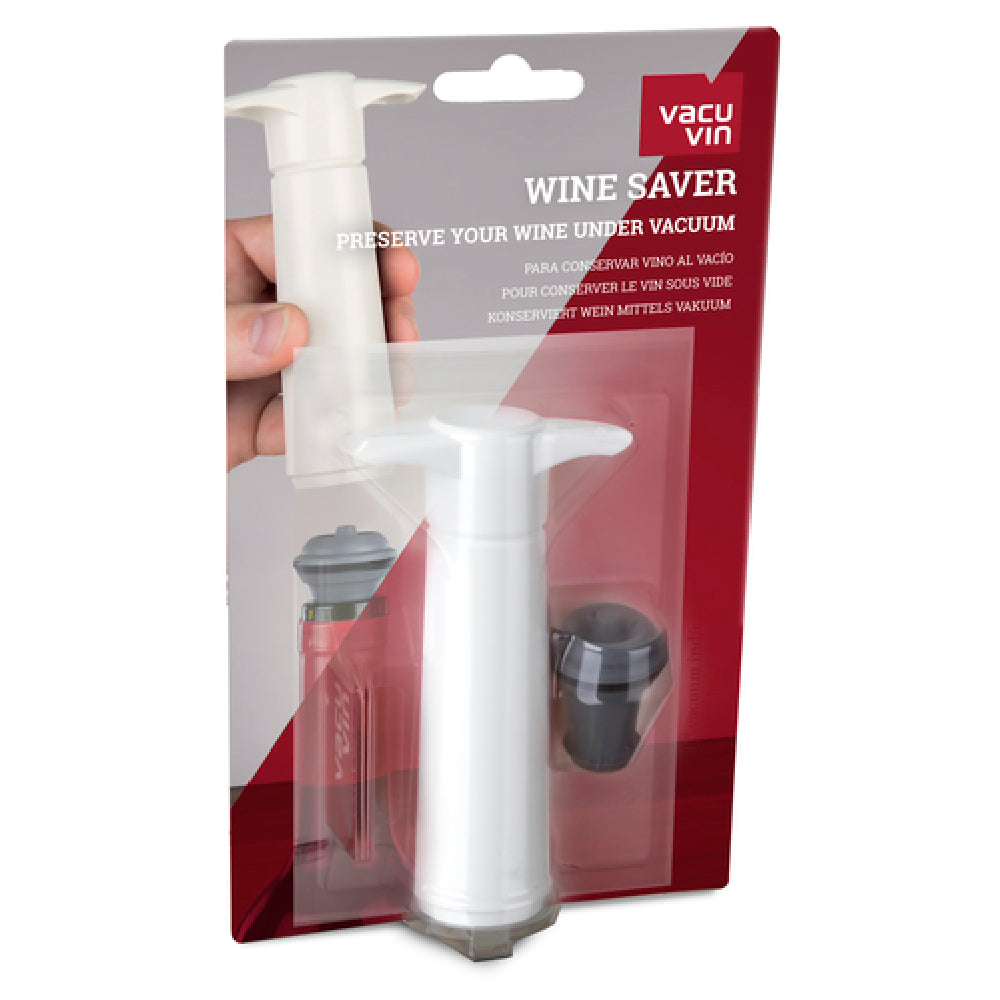 The VacuVin® Wine Saver Set is optimized for commercial wine storage and service, offering an easy-to-use vacuum pump to quickly depressurize bottles and preserve wine quality. Its durable plastic construction ensures longevity and resistance to frequent cleaning cycles. Designed for quick setup and minimal maintenance, the system supports high-volume wine service and bottle turnover. Ideal for wine cellars, bar stations, and restaurant wine lists, it enhances workflow efficiency by enabling rapid preservation between pours. The set is compact and lightweight, suitable for integration into existing beverage stations without extensive modifications.