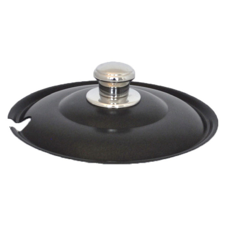 This soup tureen cover is engineered with a Notched edge for secure placement and ease of handling in fast-paced foodservice settings. Made from premium 18/10 mirror-polished stainless steel, it ensures durability and corrosion resistance. The titanium with chrome accents enhances aesthetic appeal while supporting commercial sanitation standards. Its precise 9-7/8" diameter fits 6 qt. tureens perfectly, simplifying inventory management. Designed for ease of cleaning and maintenance, the cover's smooth surface allows quick wiping between uses. Ideal for high-temperature applications, it withstands typical kitchen operating ranges and supports efficient workflow with simplified handling and integration into existing soup service stations.