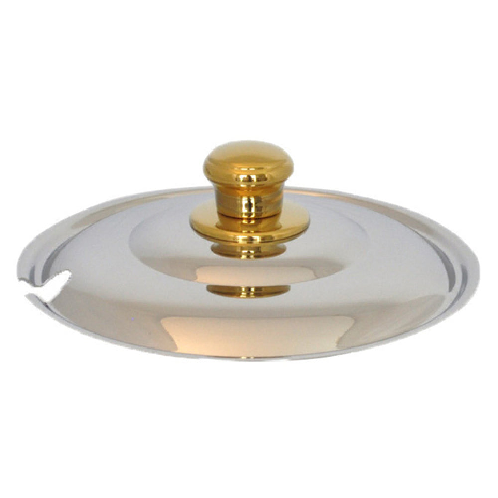 Spring USA, 375-697/6, Soup Tureen Lid, with notch for ladle, for 6 quart tureen, with gold handle, polished stainless steel, chrome (Stock Item)