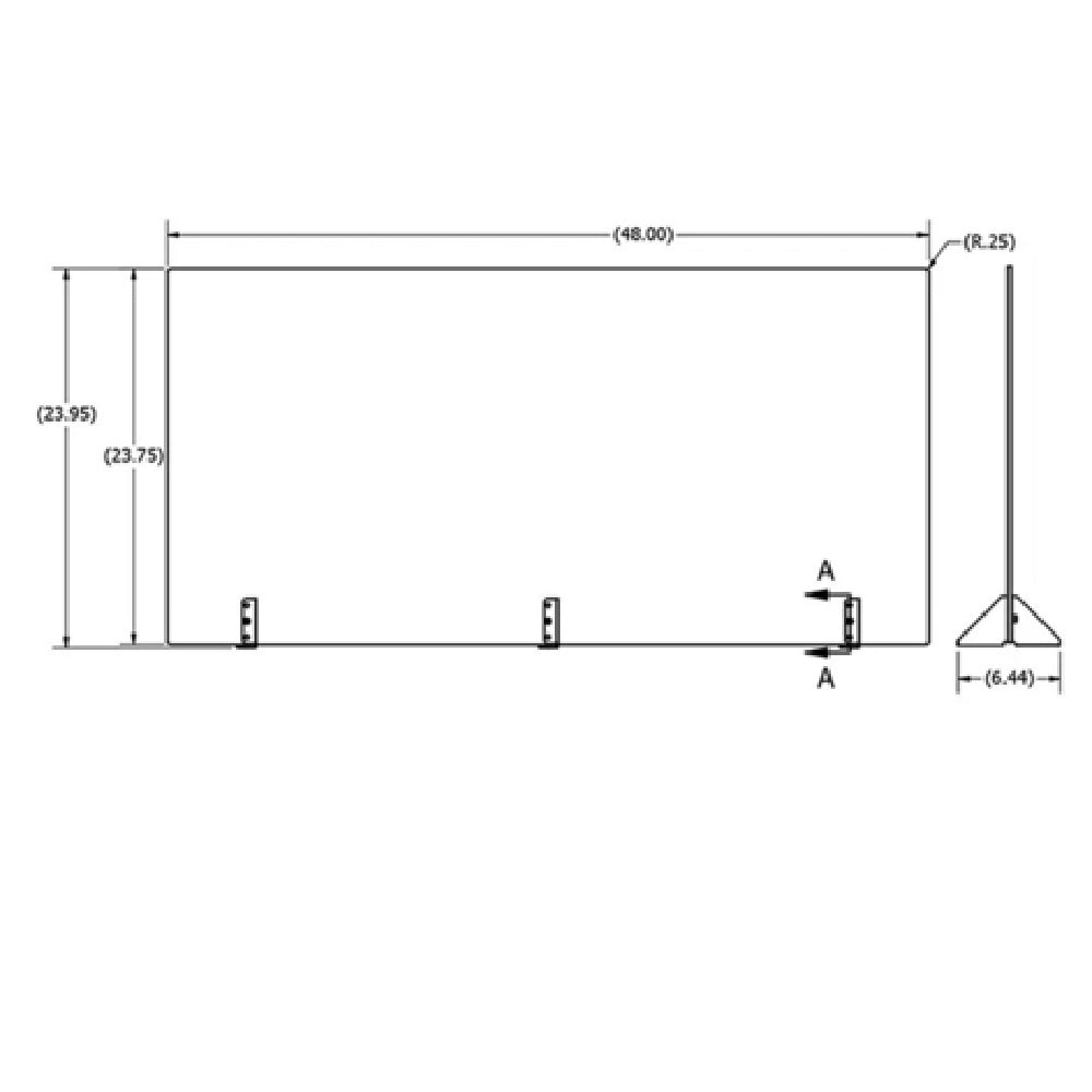 Spring USA, SFTS2448, Safety Shield, 48"W x 6-7/16"D x 23-15/16"H, clear acrylic shield, (3) black powder-coated steel feet with fastening holes, Made in USA