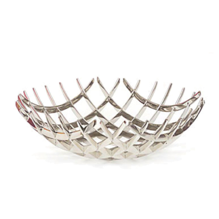 The XC6732/25 Table Top Basket’s interwoven web pattern provides strength and ventilation essential for presentation and airflow. Its stainless steel construction ensures corrosion resistance and ease of cleaning for high-traffic foodservice environments. Designed for countertop use, it supports quick accessibility during service while maintaining an attractive appearance. Its 9-5/8" diameter suits medium-sized display needs, and the mirror finish simplifies sanitation protocols for commercial use.