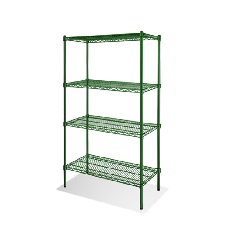 Steel Works Stainless, SW1430G-4, Heavy Duty Wire Shelving Unit, 4-tier, 14"x 30", 800 lbs. capacity, includes: (4) shelves, (4) posts, clips, epoxy coated, green, NSF (10 year warranty)