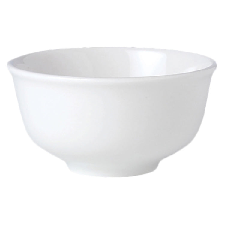 A commercial bouillon cup is a durable ceramic vessel designed for serving broths, soups, or specialty liquids in foodservice settings. Typically constructed from high-strength alumina vitrified ceramic, these cups are engineered to withstand frequent washing, thermal shocks, and rigorous handling. The Steelite 11010379 bouillon/ sugar cup is an example that is well-suited for institutional kitchens, buffets, and restaurant tabletop service, offering a precise size of 8 ounces, with dimensions of 3.88 inches in diameter by 2.13 inches in height. Its robust construction and clean finish make it ideal for high-volume operations requiring reliable and consistent presentation of hot or cold liquids during service.