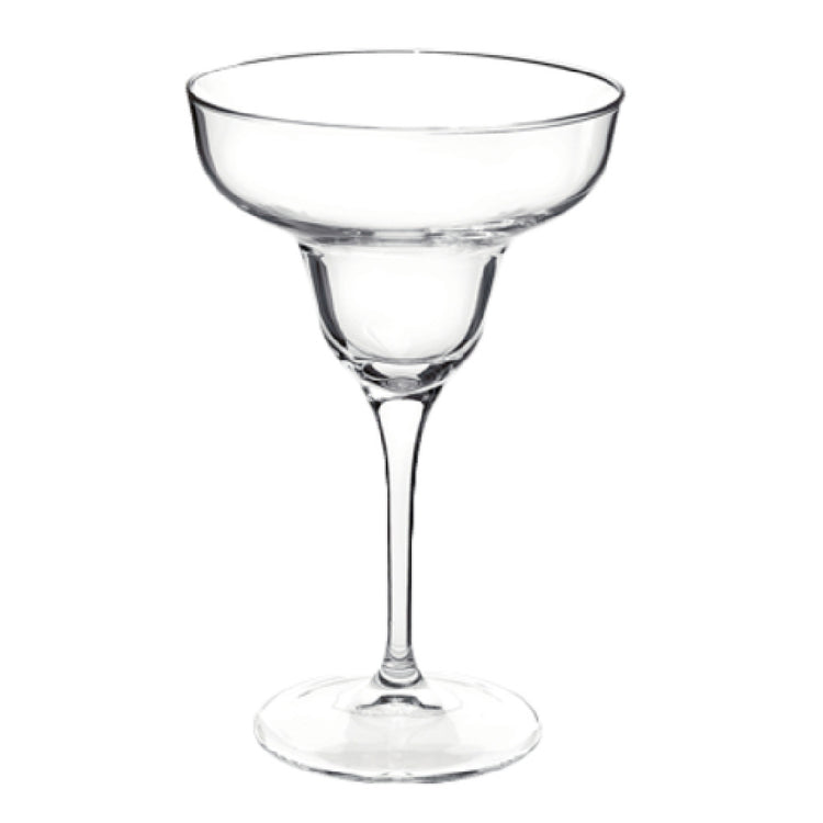 A commercial margarita glass is a specialized stemware designed for high-volume beverage service in bars, restaurants, and catering venues. It features a capacity of around 11.25 oz, constructed from durable soda lime glass with a non-tempered finish, and measures approximately 4.5 inches in diameter by 6.88 inches high. Typically installed in bar stations or cocktail prep areas, these glasses support efficient workflow and presentation for mixed drinks and specialty cocktails, making them suitable for medium- to high-traffic drink service environments, including banquet and hotel bar settings.