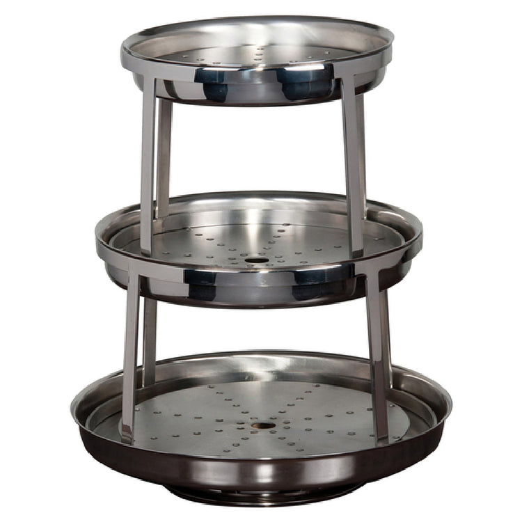 The Steelite 5850JX00 3-Tier Seafood Stand X 15.5" is a professional-grade tiered display solution designed for high-volume seafood presentation in commercial kitchens. Crafted from durable stainless steel, this seafood stand features a modular three-tier round configuration with a height of 15.5 inches, width of 12 inches, and depth of 12.25 inches, providing a robust platform for showcasing seafood and other perishables. Its innovative metal construction ensures longevity and resistance to corrosion, making it suitable for busy foodservice environments where presentation and sanitation are critical. This seafood stand is engineered for efficient workflow integration in upscale restaurants, seafood markets, and catering operations that require reliable and attractive display units without compromising on durability or ease of maintenance.