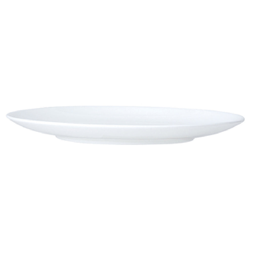 This plate features a round shape with a classic coupe rim, constructed from high-grade bone china offering excellent thermal resistance up to typical operational temperatures. It measures 8.25 inches in diameter and 0.87 inches in height, weighing approximately 9.92 lbs per case of 12 units. The material's white finish complements upscale presentation styles, and its construction supports frequent dishwashing without surface degradation. The plate's design ensures compatibility with standard commercial dishwashers, providing sanitation and workflow efficiency. Its robust build minimizes chipping and ensures consistent quality even under rigorous usage conditions.