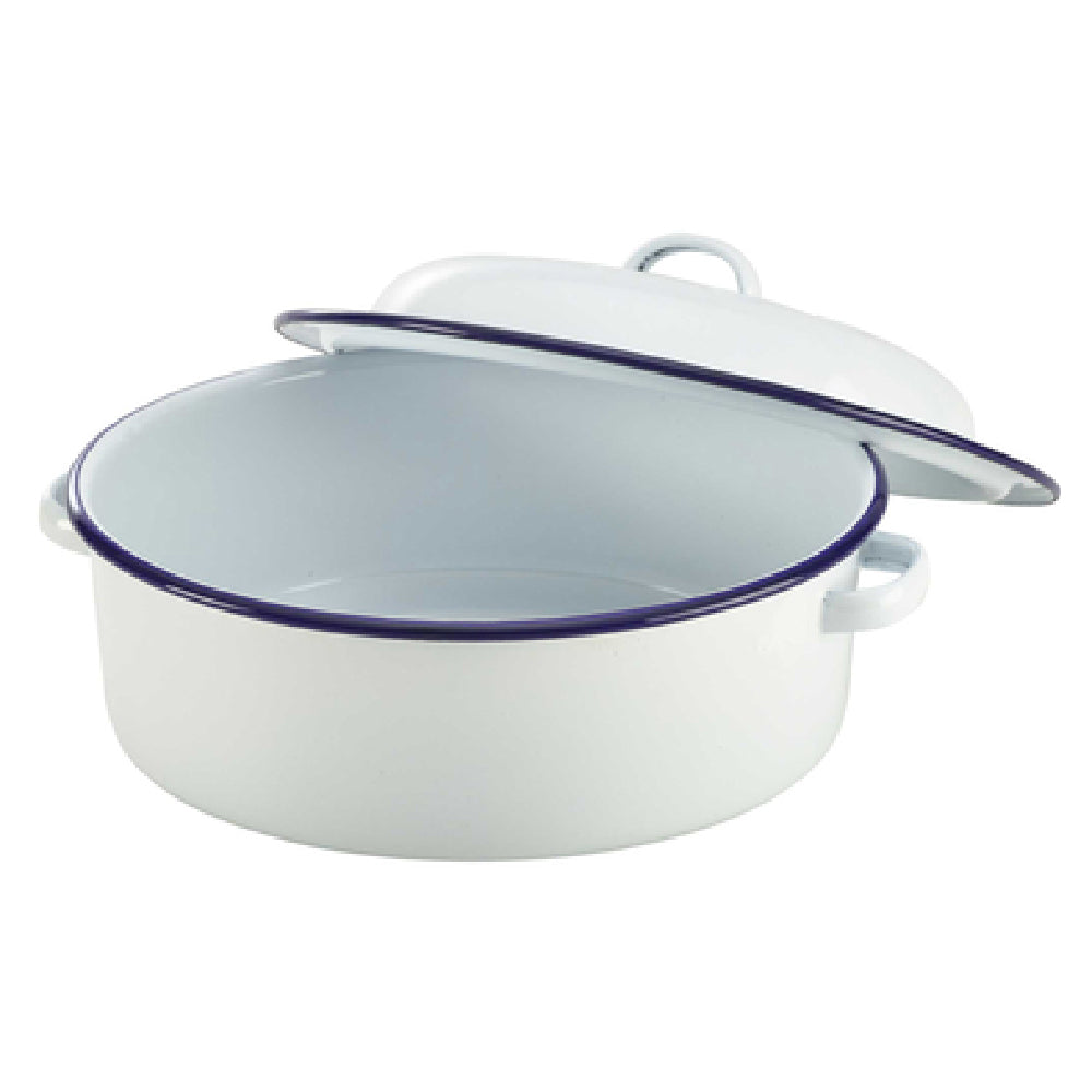 Steelite GW60520 2.3 Qt Round Roaster with Lid Enamel White with Blue Rim - 1 Dozen