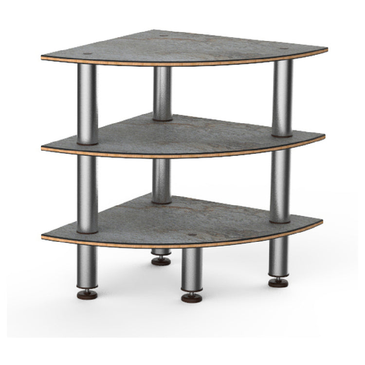 The Steelite Mogogo Buffet Solutions Modular Classic Corner Unit 3-tier is a commercial-grade buffet accessory designed for efficient foodservice presentation. Crafted by Steelite International, this triangular corner station measures 29-1/2" x 29-1/2" with a height of 35" and features a durable grey slate BHP high pressure laminate surface with a bamboo core top, supported by brushed stainless steel legs. Its 3-tier configuration optimizes space utilization in hospitality kitchens, catering environments, and buffet setups, providing an elegant and stable structure for serving and display purposes. The unit's laminated wood construction ensures long-term durability, ease of maintenance, and resistance to heavy usage typical of high-traffic foodservice settings. Technical features include a knockdown design for straightforward assembly and disassembly, facilitating effortless cleaning and customization in professional environments.