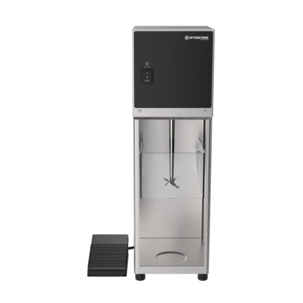 The Stoelting by Vollrath BLNDR-120FP Mix-In Blender with foot pedal speed control is a commercial-grade mixer designed for precise, hands-free operation in professional bar and beverage applications. Featuring a 7-1/2" W x 8-1/2" D footprint and a height of 24" to accommodate various countertop setups, this blender offers variable speed adjustment from 0 to 3000 RPM. Its stainless steel exterior ensures durability, while a Lexan splash guard provides added sanitation. Powered by a 1/5 HP motor, it is suitable for high-demand environments requiring reliable and efficient mixing performance.